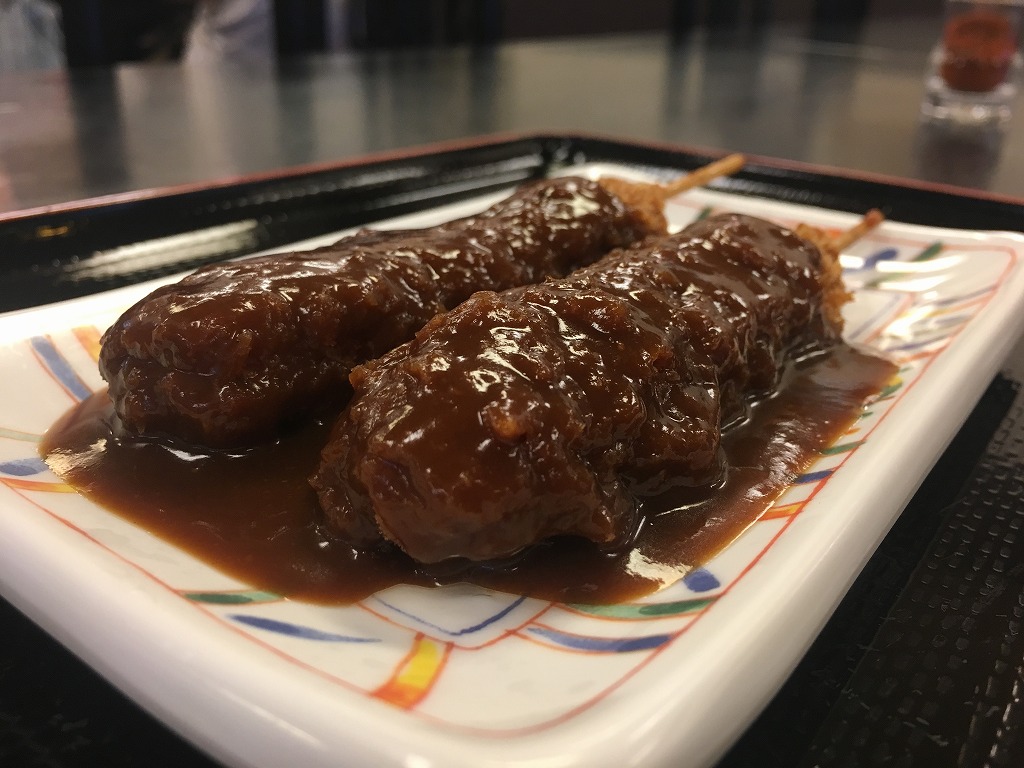 腹ごしらえに、味噌串かつ!