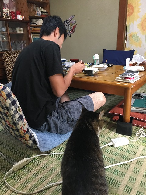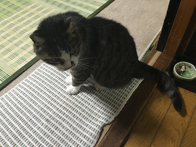 翌朝のことになりますが、家族以外には近づかないうちのトラがふじくんから逃げない!