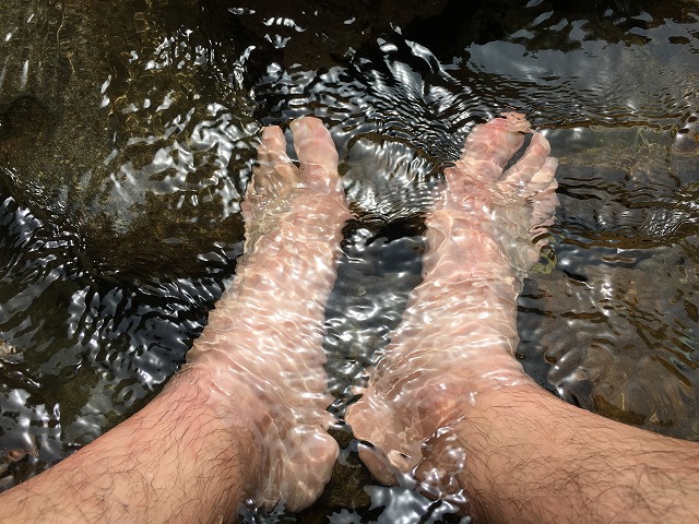 石を渡ってたら動く石あって片足水没、靴脱いで足を冷やして疲れを癒しました(笑