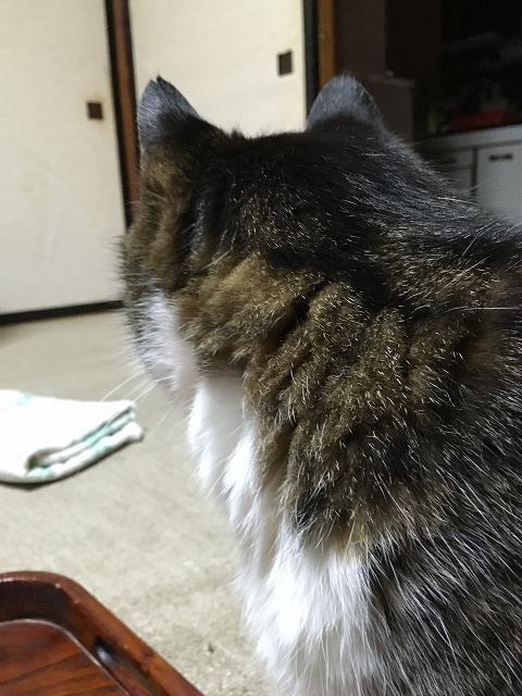 夕飯ねだってきたトラを無視したらそっぽ向かれた(笑