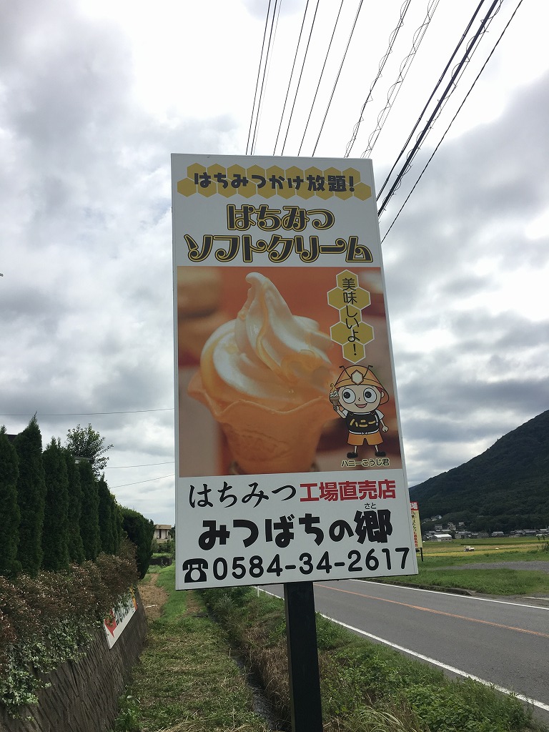 ハチミツソフトの看板に惹かれ、花に吸い寄せられるミツバチのごとく「みつばちの郷」っていうはちみつ屋さんへ。