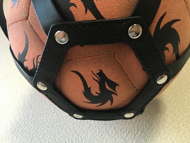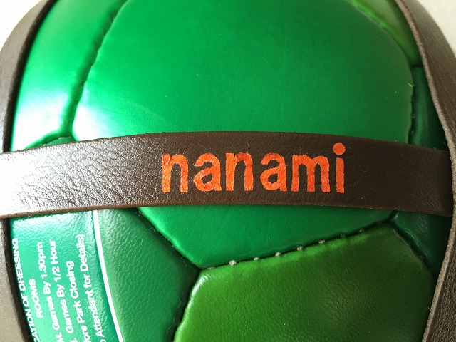 サッカーボールサイズのコーヒーブラウンにサンライズオレンジでネーム入れしました。